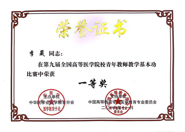 大会还举行了颁奖仪式,对医学教育终身成就专家、医学教育杰出贡献专家及2019年度医学教育百篇优秀论文、2019年度青年教师教学基本功比赛等获奖项目进行了表彰,我校基础医学部李晟副教授获得青年教师教学基本功比赛基础综合组一等奖,这是我校首次在此项赛事中获得一等奖,充分展现了西安医学院青年教师的风采,同时也进一步提高了我校在医学教育领域的知名度和影响力。