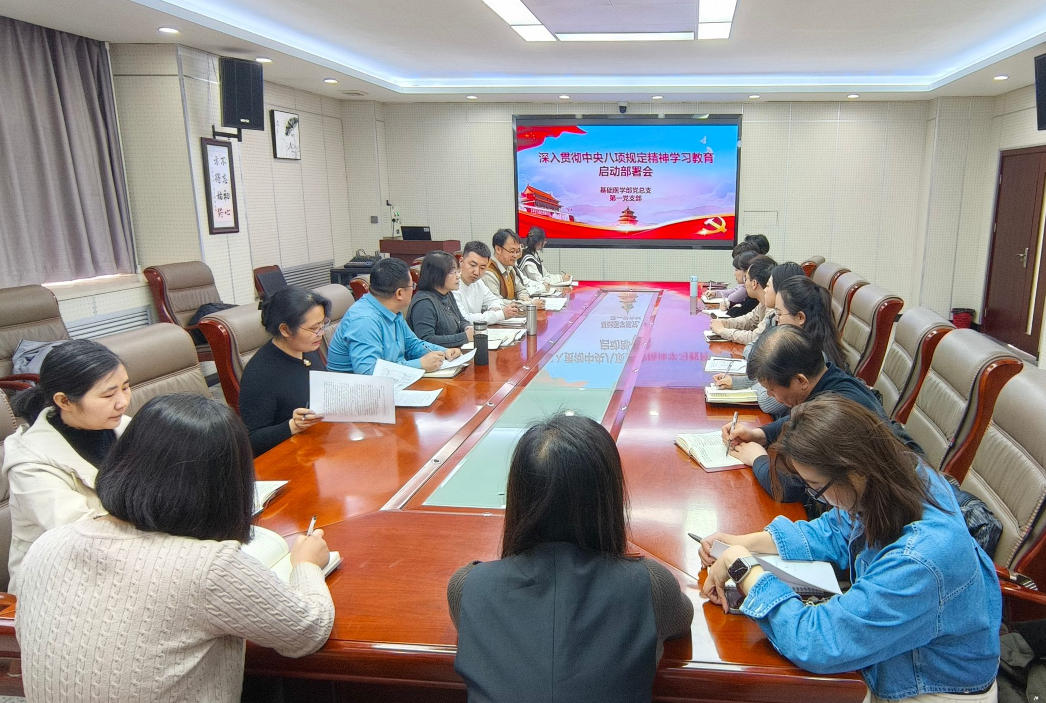 近日,基础医学部党总支第一党支部召开党员大会,启动部署深入贯彻中央八项规定精神学习教育。会议由党支部书记郑慧媛主持,第一党支部全体党员参加。