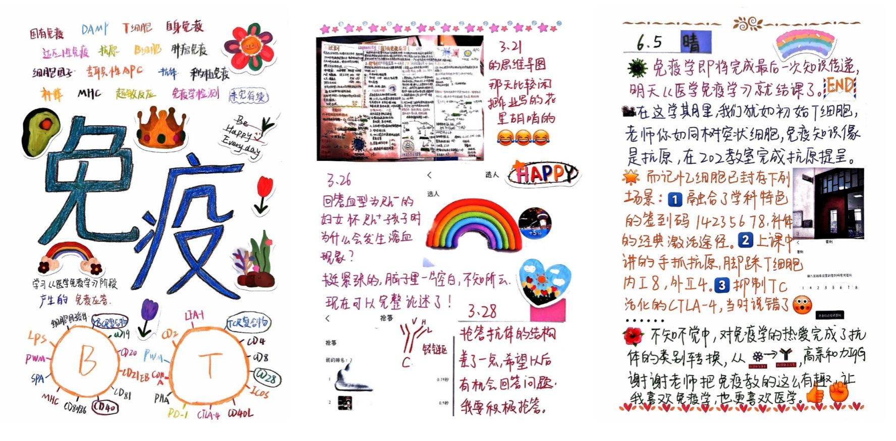 册子里记叙了学生一整学期学习免疫的心得体会,从理论课到实验课,从思维导图绘制到学习通平台完成作业,无不体现学生的学习热情和胡老师的教学水平,同时册子里也记录胡老师对学生的言传身教,点滴间都让学生感受到老师的关怀,就像学生写的:真的很幸运能在这学期的免疫课与您相遇,上课的精彩讲解与您的人格魅力就像T/B细胞的刷更新好,不断激活我对于医学的热爱。