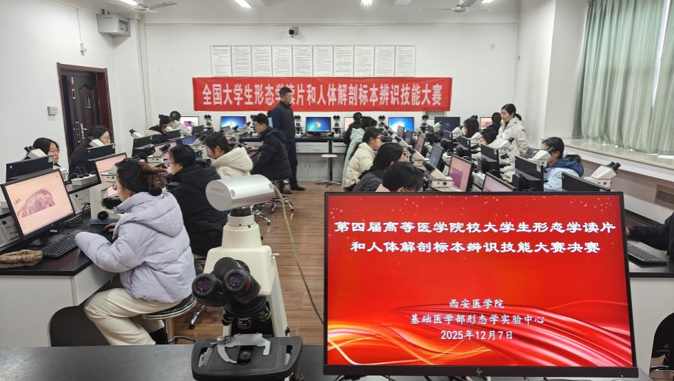 2025年12月7日,由全国基础医学形态学实验室主任联席会主办的“第四届高等医学院校大学生数字形态学读片和数字解剖标本辨识技能大赛”决赛顺利举行,西安医学院考点设在基础医学部形态学实验中心。