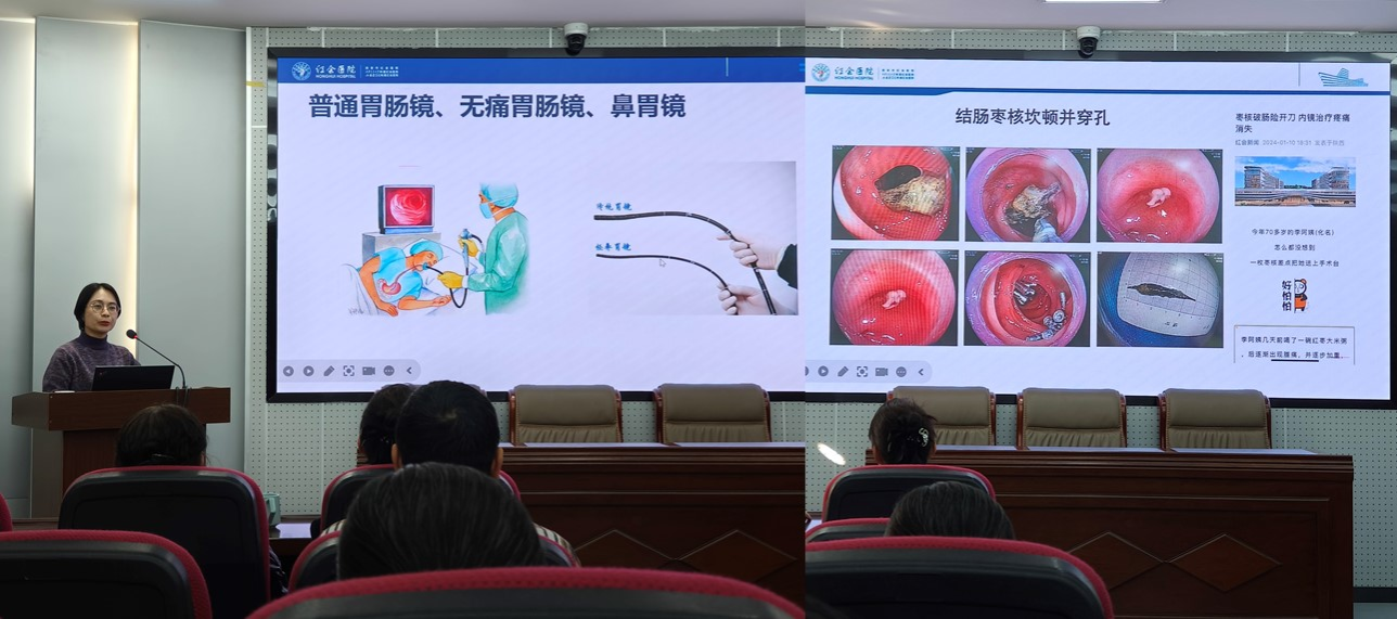 李亚妮医生开展了一场以临床病例贯穿全程的专题讲座——《消化内科十问十答》。讲座阐述了体检时进行胃肠镜检查的重要性,介绍了内镜下治疗的诊疗范围(消化道早癌、胃肠息肉、胆总管结石、阑尾结石、消化道梗阻、消化道出血与内痔等)、方式及新进展,科普了消化道常见病的诊治。讲座通过大量临床病例的内镜图片、视频,呈现了一场兼具专业深度、视觉冲击及健康教育实效性的专题课堂,为教师专业课教学,尤其是基础课教师贯彻落实“早临床”教学理念,提供了重要的临床案例素材。现场座无虚席,反响热烈。