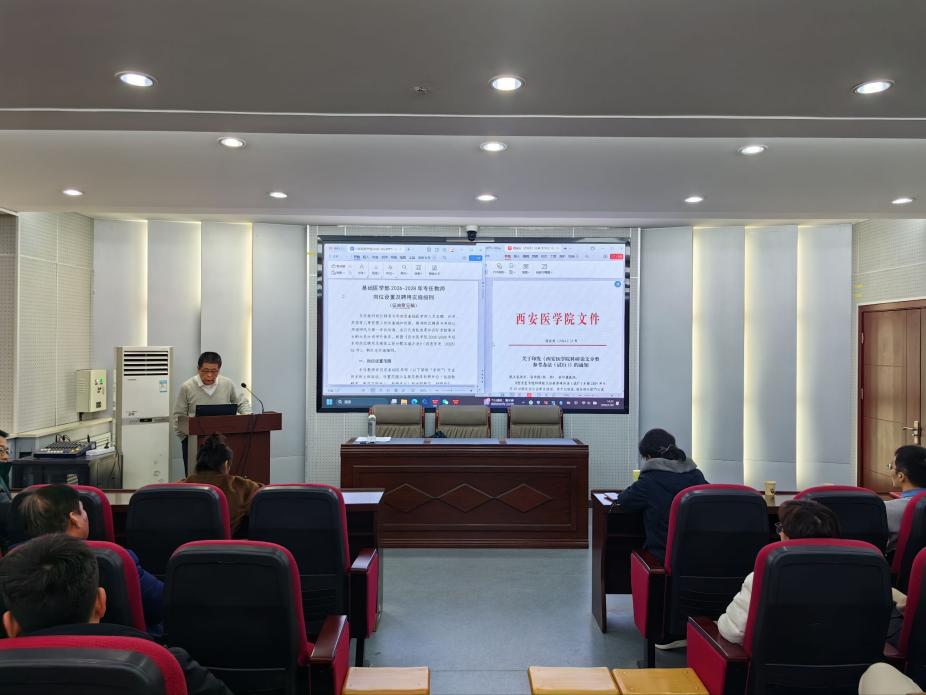 2026年1月20日,基础医学部在系部报告厅(B楼411室)召开2025年度二级教职工代表大会(一届二次)。本次会议应到代表59人,实到53人,符合法定人数要求。会议由基础医学部党总支书记、基础医学分工会主席尚瑜主持。