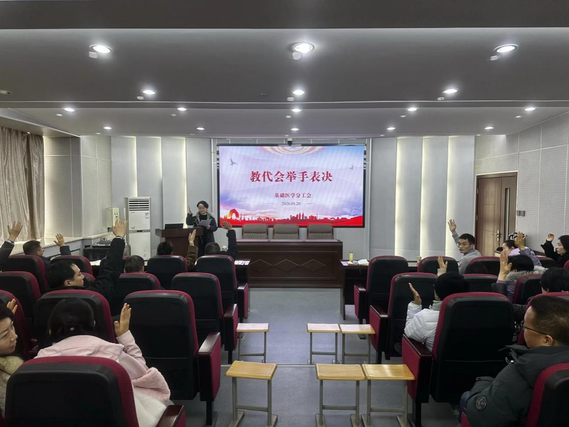 最后,尚瑜作总结讲话。她指出,本次教代会是学院落实学校二级教代会制度、深化民主管理的重要实践,2026年分工会将紧紧围绕教职工核心需求,持续优化服务机制,为助推基础医学部和学校事业高质量发展凝聚力量。同时,2026年是基础医学部和学校改革发展的关键之年,她希望全体教职工深刻把握学校“353”工作战略、“28”工作布局和“135”工作举措的核心要义,以高度的责任感和使命感投身各项工作,持续推动学院内涵建设与高质量发展。(基础医学部 文 付新乐 图 余晨光 审核 尚瑜)